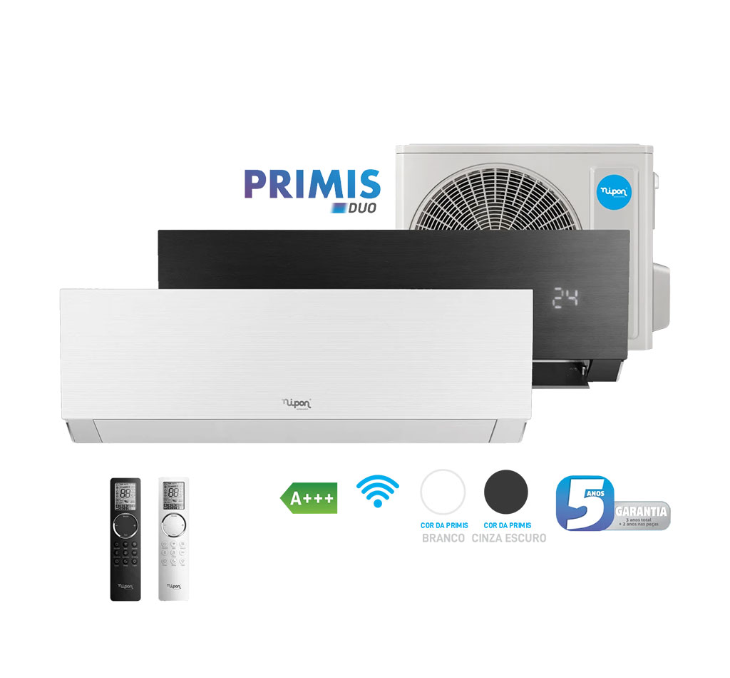 As unidades de ar condicionado PRIMIS DUO são altamente eficientes com uma classe energética A+++. A PRIMIS DUO transforma a qualidade do ar da sua casa, graças ao gerador de iões e ao sistema UV que elimina vírus e bactérias.